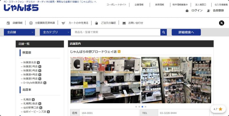 | 店舗名 | じゃんぱら中野ブロードウェイ店 |