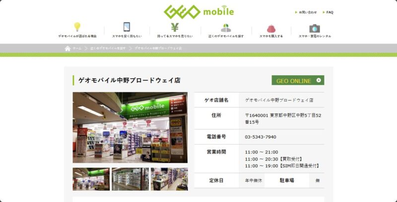 | 店舗名 | ゲオモバイル中野ブロードウェイ店 |