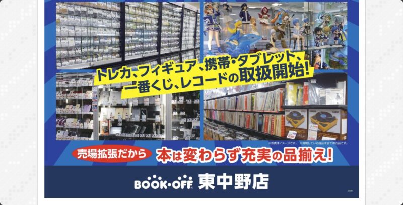 東中野駅から徒歩数分の場所にある「BOOKOFF東中野店」は、本やゲームの買取で全国的に知られる大手チェーン店です。