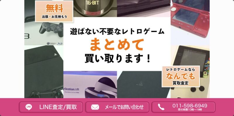 札幌市白石区に店舗を構え、レトロゲーム買取を専門としている地元密着型の買取業者です。